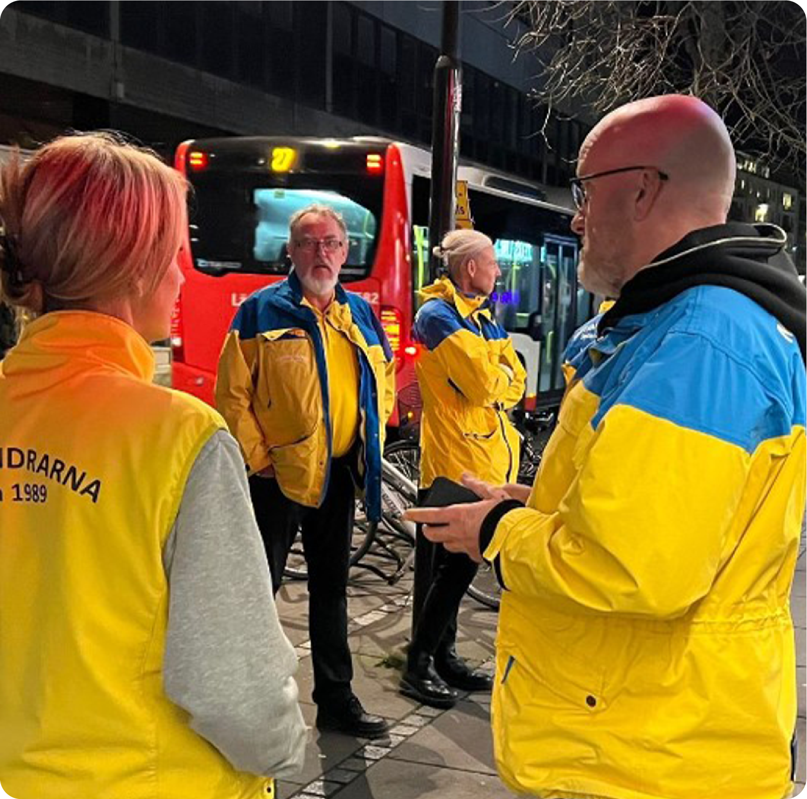 In addition, we sponsor night patrollers in Gothenburg. Night patrollers provide safety for young people through their presence in cities in the evenings and nighttime.